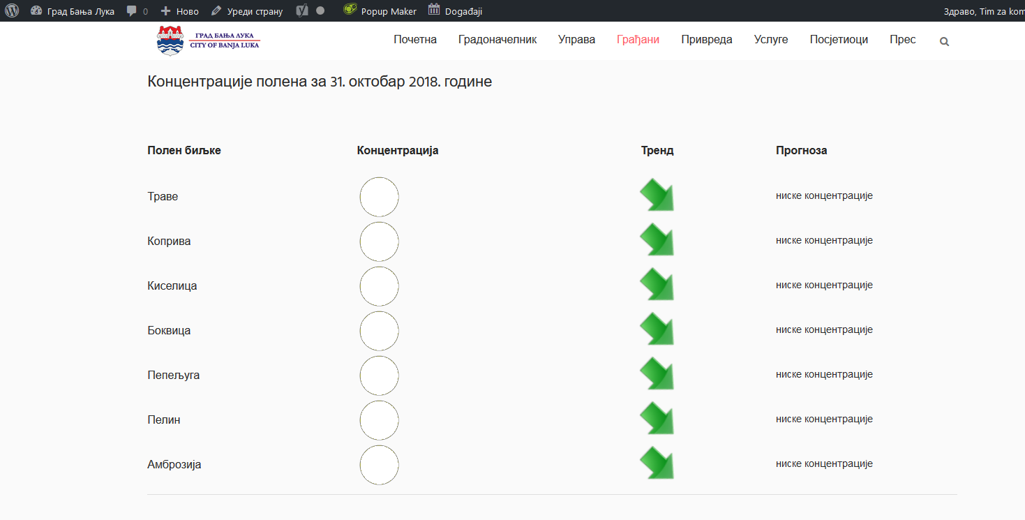 – S obzirom na to da prisustvo aeroalergenih vrsta polena na podrucju grada nije registrovano u poslednjih šest dana, prema pravilima Međunarodne asocijacije za aerobiologiju smatra sa da je formiranje polena u tekućoj vegetaciji završeno. Zbog toga, do početka sljedeće vegetacione sezone (sredina februara 2019. godine), prestajemo sa mjerenjem koncentracije aeroalergenih vrsta polena – objašnjavaju u Poljoprivrednom institutu RS.
