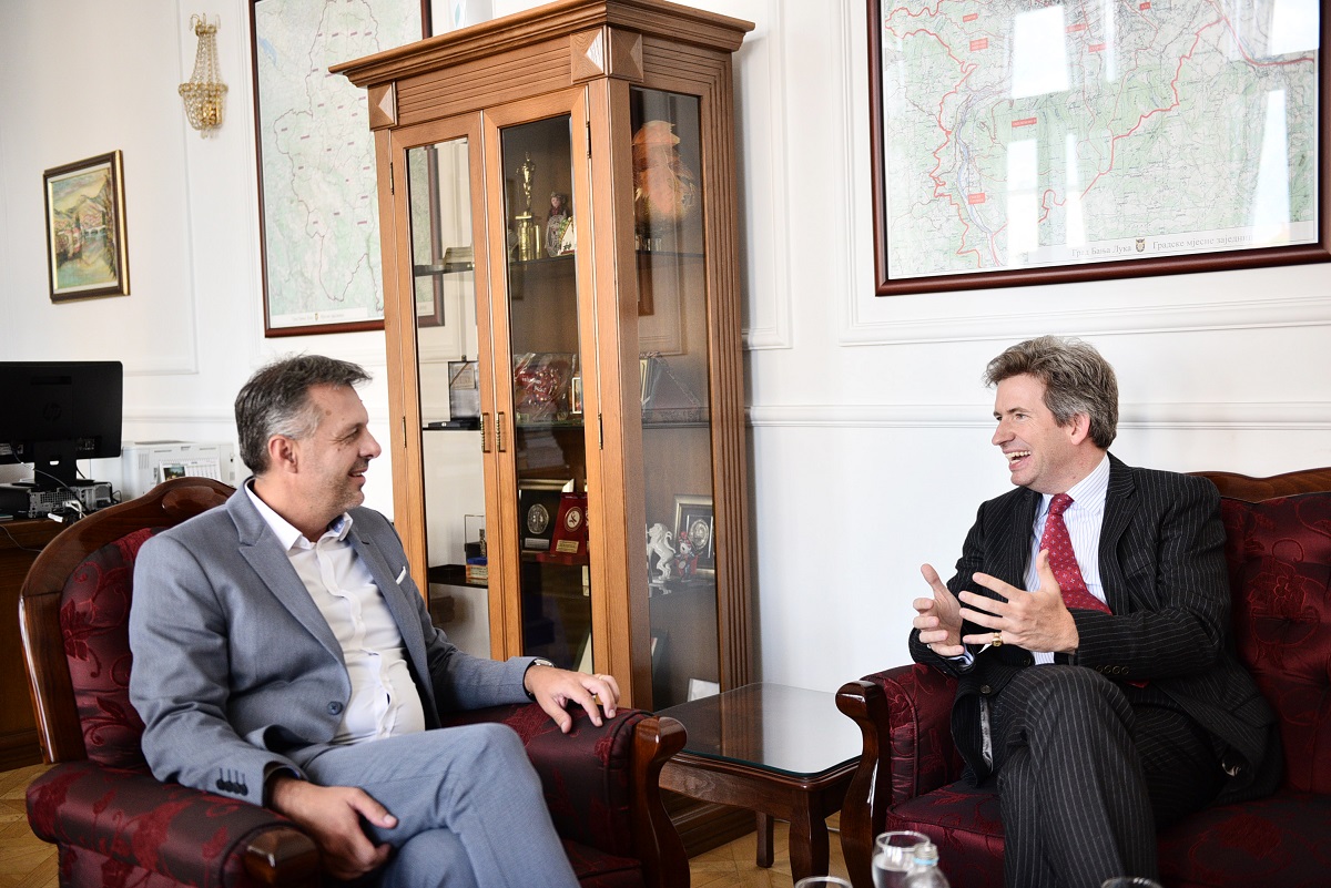 Градоначелник Бање Луке Игор Радојичић примио је данас у опроштајну посјету амбасадора Велике Британије Евдарда Фергусона, који ускоро одлази са ове функције.