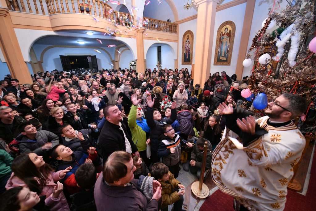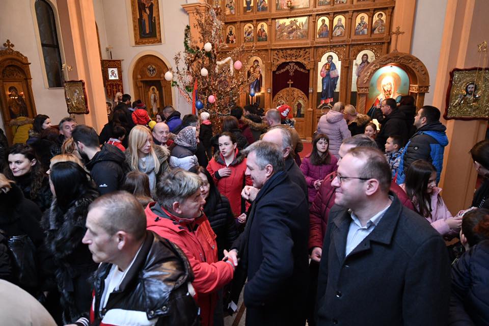 Gradonačelnik Igor Radojičić, prisustvovao je liturgiji i tradicionalnom nalaganju badnjaka ispred Hrama Svetog Vasilija Ostroškog u naselju Obilićevo.