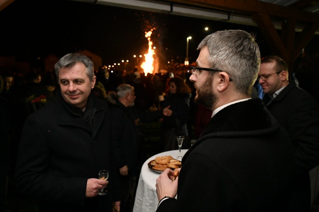 On je rekao da je nakon službe i pijukanja tradicionalno obavljeno nalaganje badnjaka da se poželi mir svima prisutnima, zdravlje i sreća.