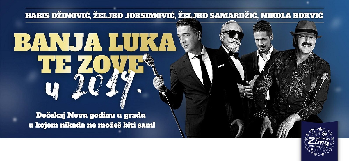 Tako će 30. decembra nastupiti Haris Džinović, a u novogodišnjoj noći Željko Samardžić i Nikola Rokvić.  Prvog dana nove 2019. godine Banjalučane i tiriste iz cijelog regiona zabavljaće Željko Joksimović.