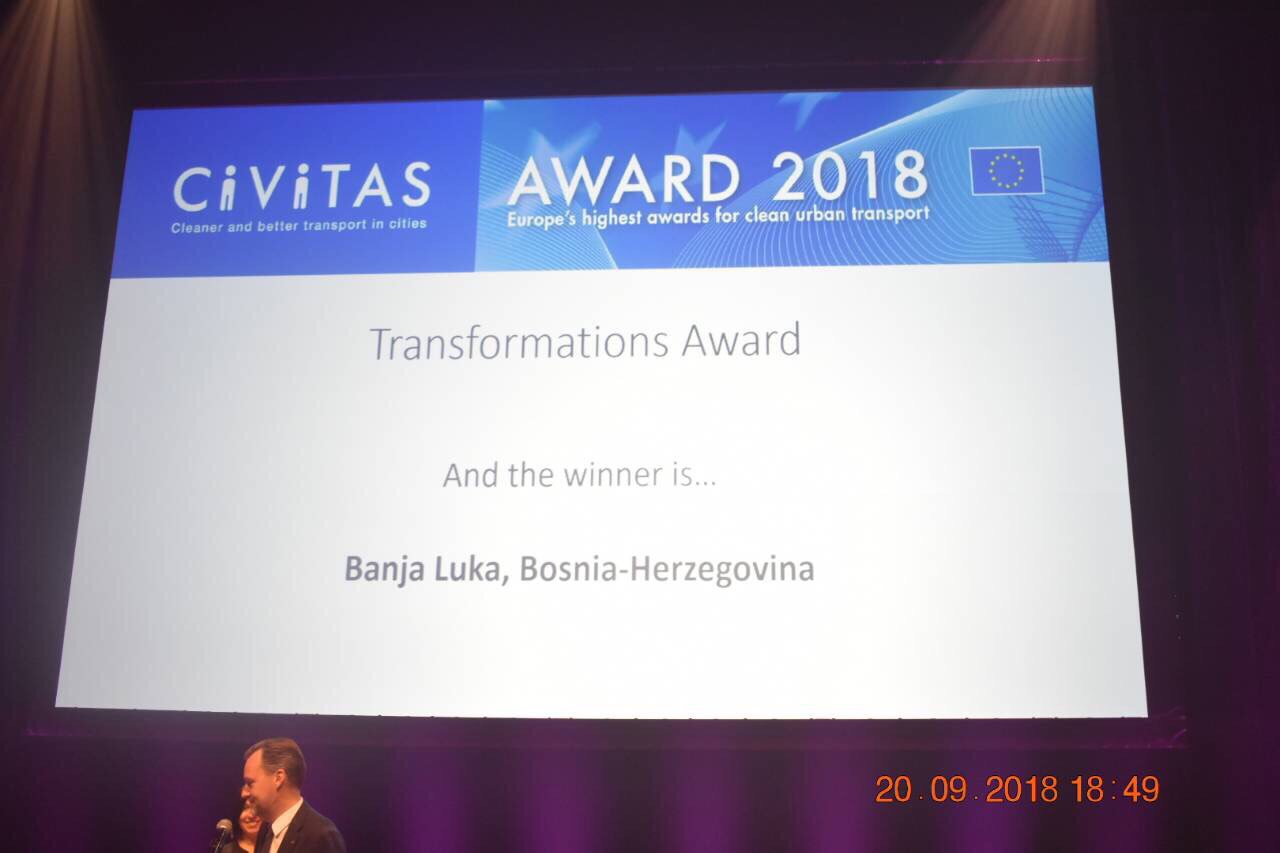 Grad Banja Luka dobitnik je ovogodišnje prestižne evropske nagrade za unapređenje urbane mobilnosti, odlučio je ekspertski žiri Civitasa, ugledne asocijacije evropskih gradova.