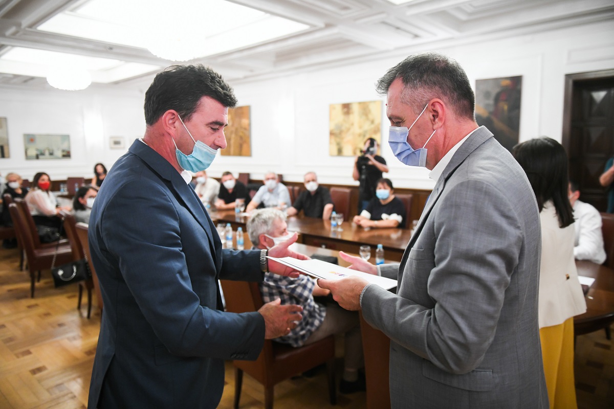 Градоначелник Игор Радојичић, уручио је данас представницима удужења грађана уговоре о суфинансирању пројеката из области културе. Радојичић је рекао да је 2020. година изузетно тешка када је у питању култура, јер је било више отказаних догађаја него оних који су одржани.