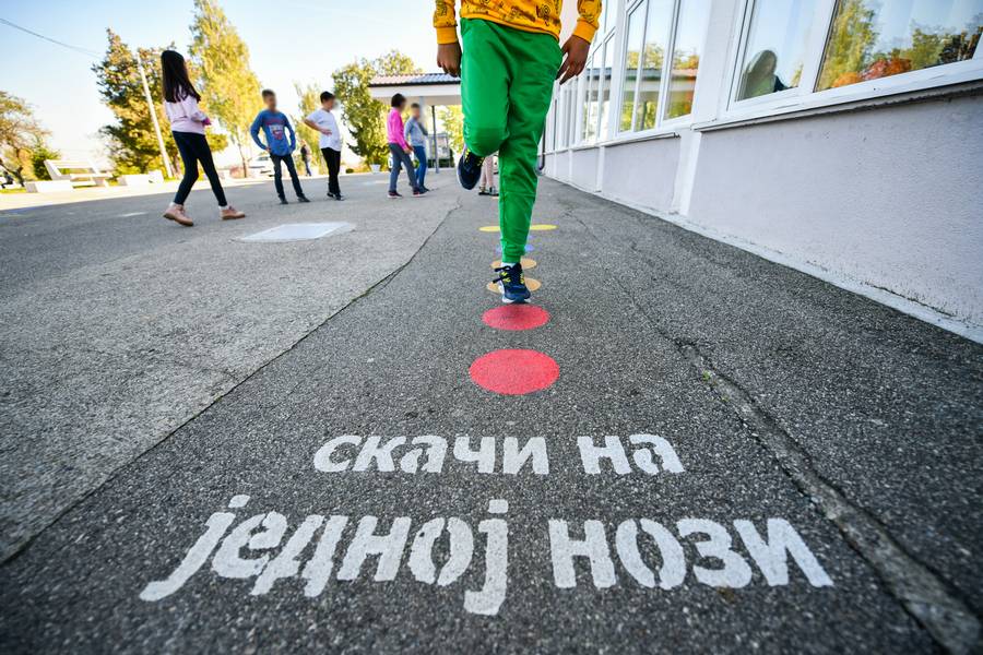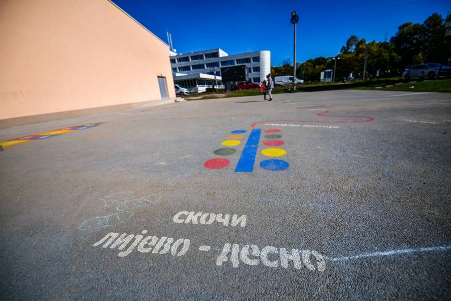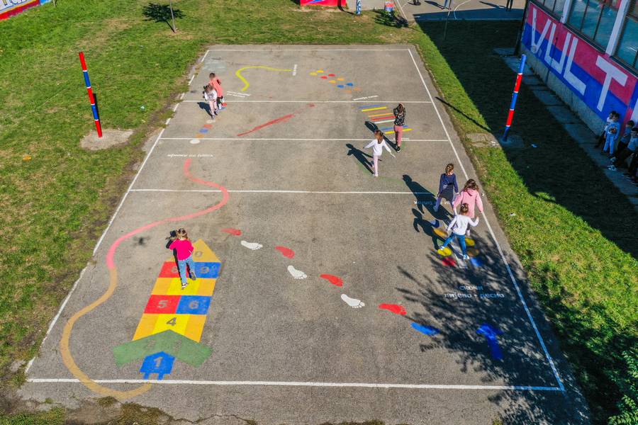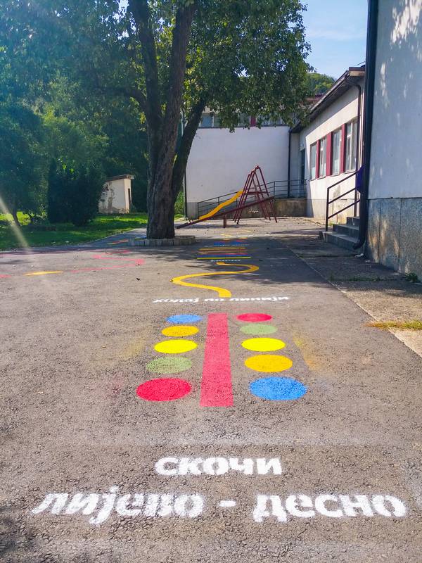 У двориштима основних школа на подручју града исцртане су „забавне школице“, које на занимљив начин нуде едукативни садржај за малишане.