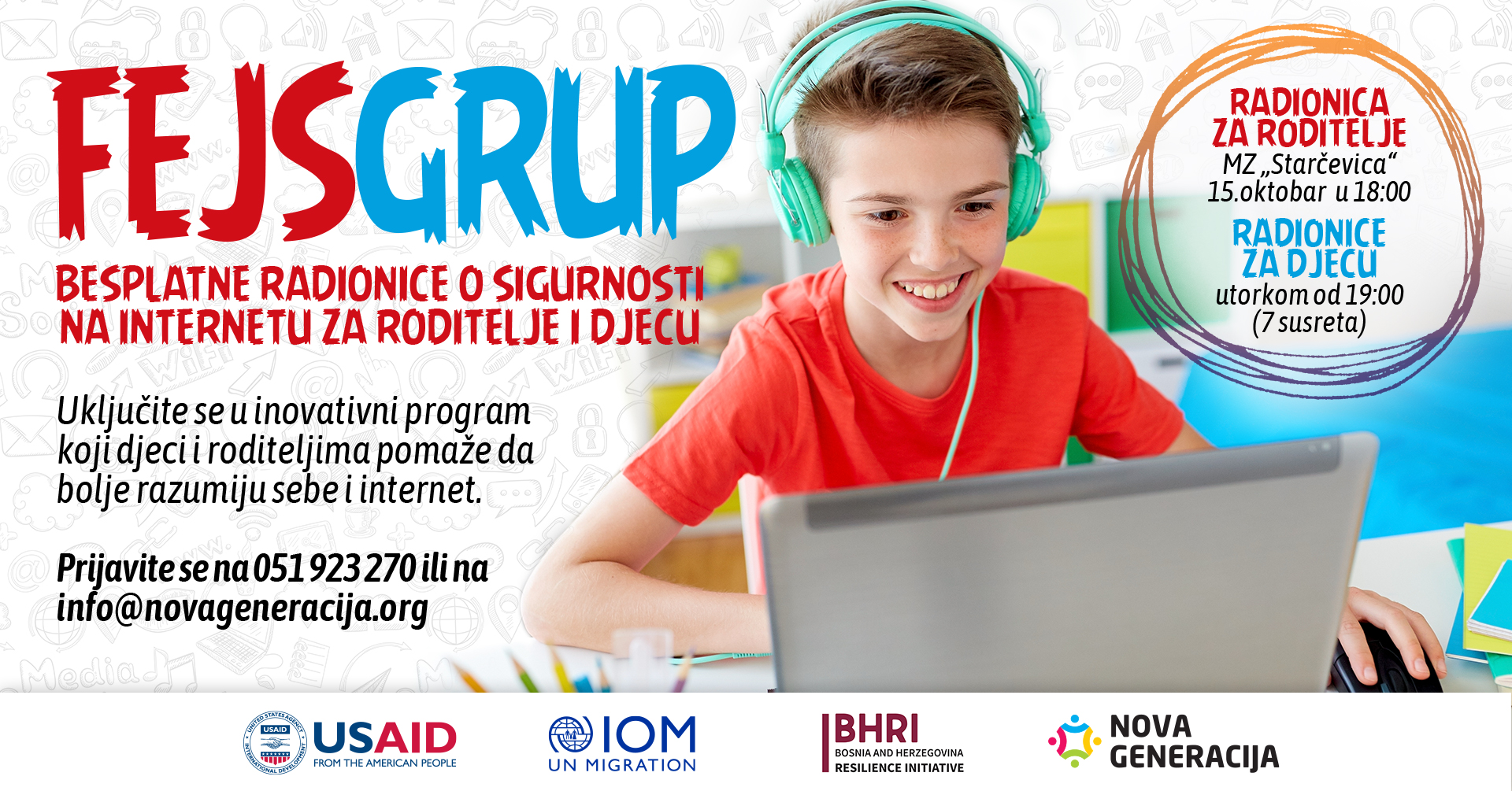 Заинтересовани за радионице могу се пријавити путем телефона број 051 923 270, или електронском поштом на info@novageneracija.org