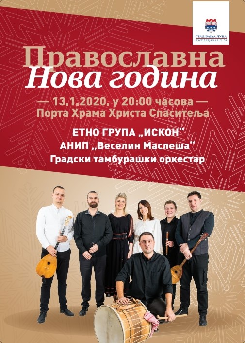 Etno senzacija – očekuje sve koji odluče da Pravoslavnu novu godinu dočekaju u Banjoj Luci. Najpoznatija etno grupa iz Srbije „Iskon“ održaće koncert 13. januara, u porti Hrama Hrista Spasitelja.