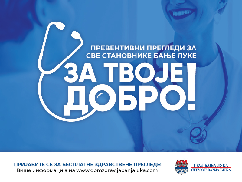 Због актуелне епидемиолошке ситуације са корона вирусом, Штаб за ванредне ситуације Града Бање Луке, одлучио је да привремено буде обустављена акција превентивних здравствених прегледа под називом “За твоје добро”.