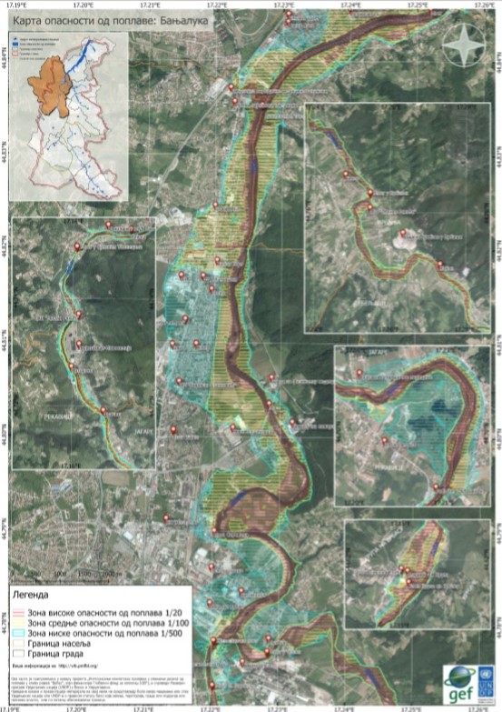 Карта опасности од поплава, као дио пројекта „Интегрисање климатских промјена у смањењу ризика од поплава у сливу ријеке Врбас“, на прецизан начин показује све критичне тачке, дијелићи их на мјеста високе, средње и ниске опасности од поплава.