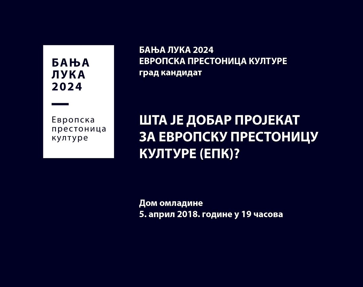 Тим за припрему апликације „Бања Лука 2024“ – град кандидат, организоваће сутра, 5. априла, са почетком у 19 часова, у Дому омладине – инфо дан о теми: Шта је добар пројекат за „Европску престоницу културе“.