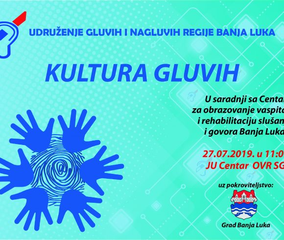 Удружење глувих и наглувих регије Бања Лука, у сарадњи са Центром за образовање, васпитање и рехабилитацију слуха и говора организује културну манифестацију под називом „Култура глувих’ која ће бити одржана суботу 27. јула.
