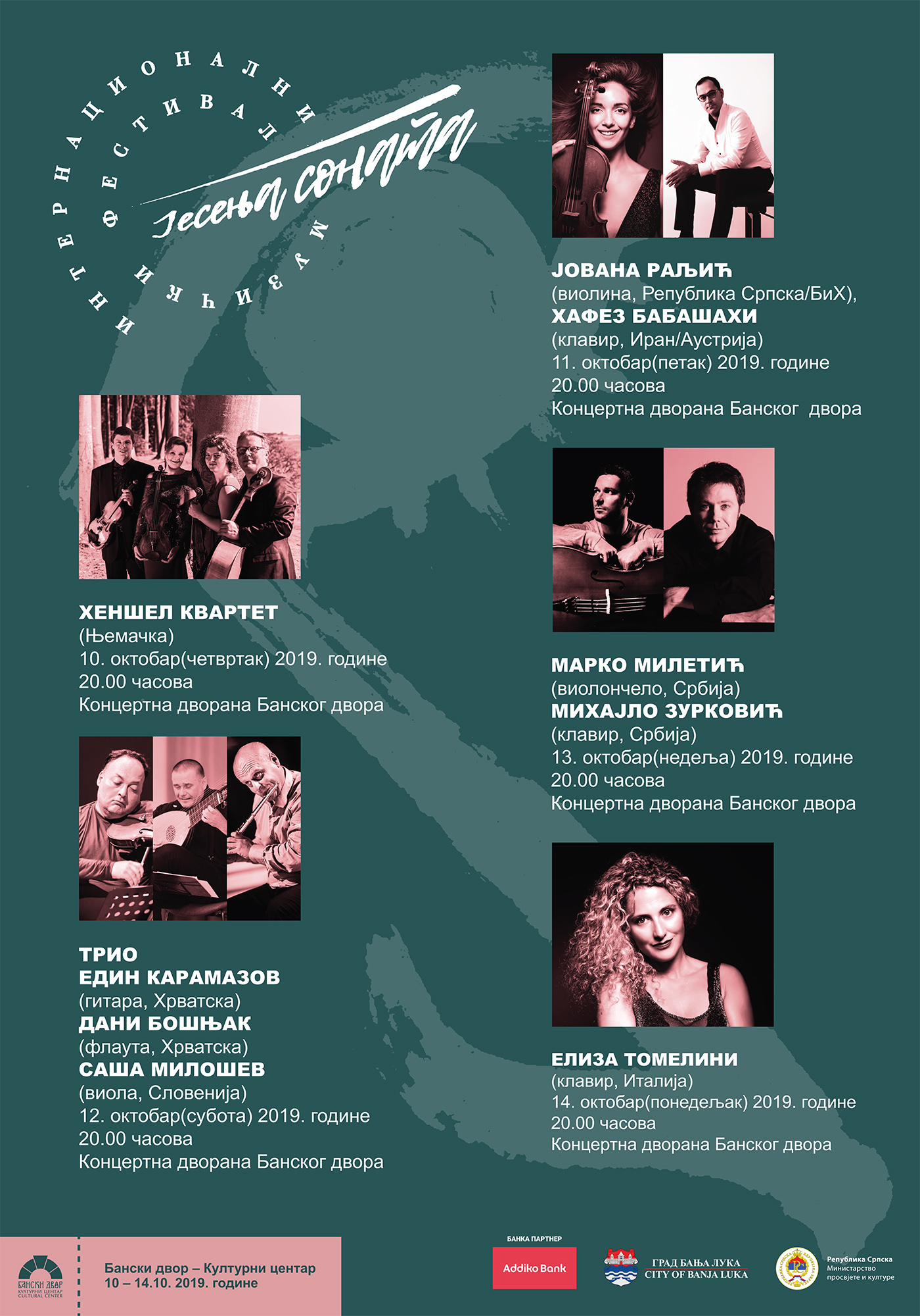 - Част да отвори „Jесењу сонату“ припашће реномираном „Хеншел квартету“ из Њемачке, једном од најугледнијих и најзначајнијих гудачких квартета данашњице. Другог дана фестивала, представиће нам се реномирана домаћа умјетница која је постигла запажене резултате и на свјетској сцени, виолинисткиња Јована Раљић, и њен гост, истакнути пијаниста и клавирски педагог са адресама у Аустрији и Ирану, Хафез Бабашахи. Трећег дана фестивала угостићемо врхунске музичара Едина Карамазова (лаута), Данија Бошњака (флаута) и Александра Милошева (виолина). Четвртог дана фестивала, публици ће се представити угледни музичари Михајло Зурковић (клавир) и Марко Милетић (виолончело) – казао је Матовић.