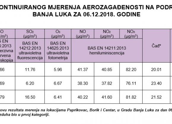 Navodeno je u izvještaju Instituta za građevinarstvo „IG“, koje obavlja mjerenja za grad Banju Luku i koje svakodnevno možete pratiti na ovoj internet stranici.