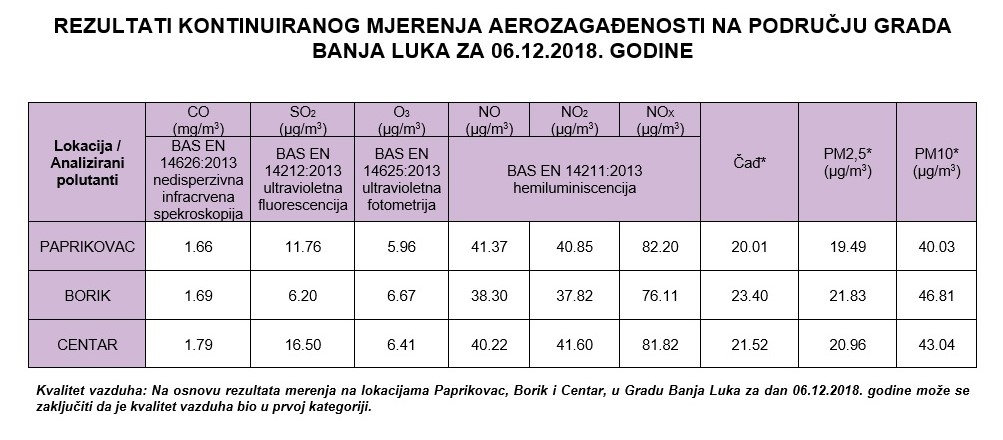 Navodeno je u izvještaju Instituta za građevinarstvo „IG“, koje obavlja mjerenja za grad Banju Luku i koje svakodnevno možete pratiti na ovoj internet stranici.