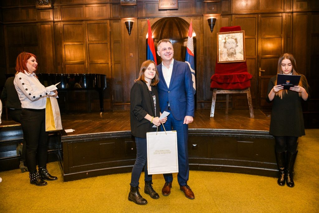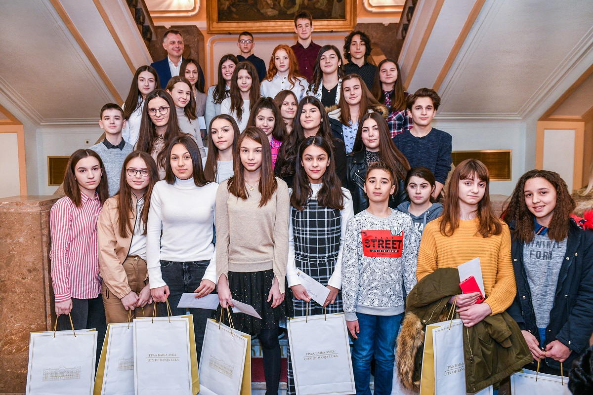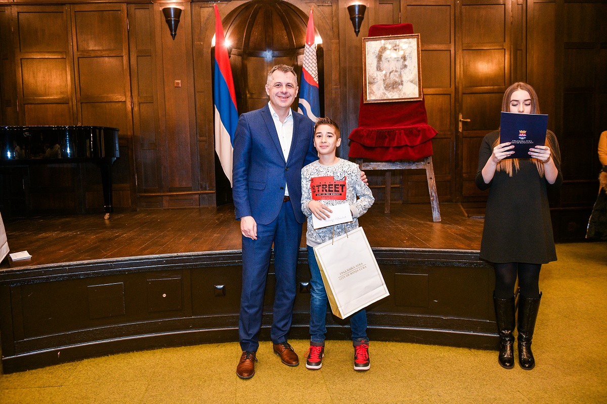 Na svečanosti u Banskom dvoru, najbolji banjalučki osnovci dobili su novčanu nagradu u iznosu od po 150 KM i poklon knjigu „Starostavne goraždanske knjige“ autora dr Biljane Samardžić.
