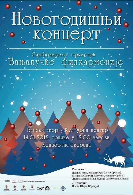 У Концертној дворани Банског двора, 14. јануара у 12.00 часова, биће одржан Новогодишњи концерт Симфонијског оркестра Бањалучке филхармоније.