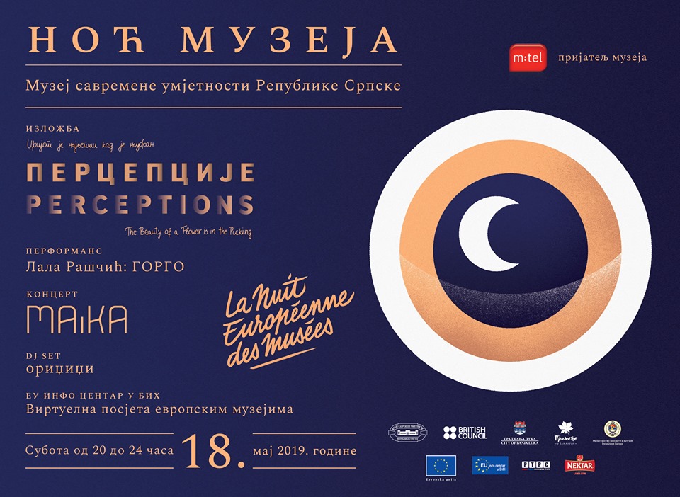 Покровитељи догађаја „Европска Ноћ музеја“ су Министарство просвјете и културе Републике Српске и Град Бања Лука, а ове године догађај је уврштен у манифестацију „Прољеће у Бањалуци“.