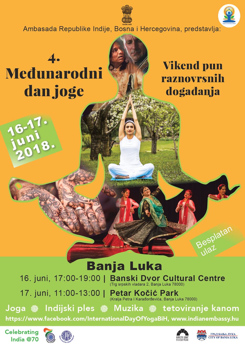 U saradnji sa Ambasadom Indije u BiH, dogovoreno je da obilježavanje Dana joge u Banjoj Luci bude 16. i 17. juna, za kada je najavljeno više različitih dešavanja.