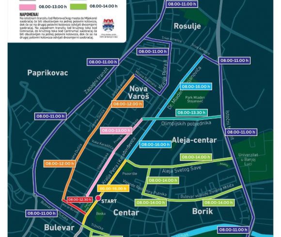 Zbog održavanja manifetsacija u okviru 4. banjalučkog polumaratona, biće obustavaljen saobraćaj na više lokacija u gradu, a doći će i do korekcija u javnom prevozu putnika.