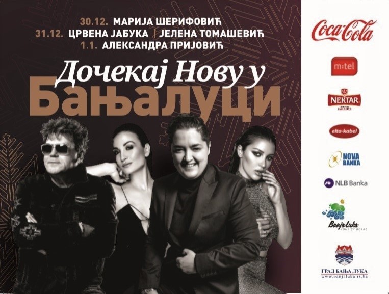 Tokom novogodišnjih praznika, Banjalučane i sve goste na Trgu Krajine očekuju trodnevni novogodišnji koncerti sa regionalnim zvijezdama. Evrovizijska pobjednica Marija Šerifović nastupiće 30. decembra. U Novu, 2020. godinu ući ćemo uz pjesme “Crvene jabuke” i Jelene Tomašević, a 1. januara domaće goste i turiste zabavljaće Aleksandra Prijović.
