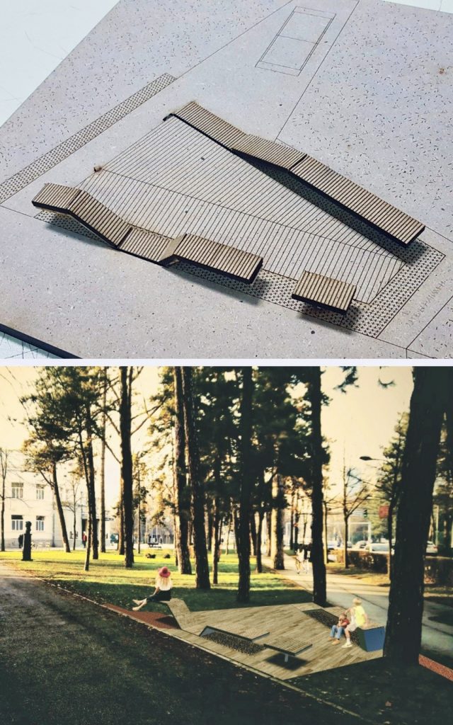 За најбољи дизајн клупа и локацију у градској језгри изабрано је рјешење за зелену површину у Алеји Светог Саве, у близини Народног позоришта РС – тзв. Батерфлај парк.