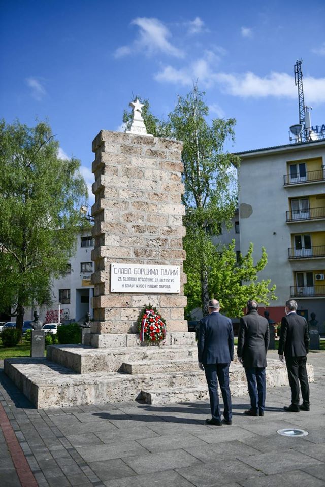 Gradonačelnik Igor Radojičić je, zajedno sa predsjednikom Skupštine grada Zoranom Talićem i konzulom Srbije Vladimirom Nikolićem, položio vijenac na spomenik na Trgu palih boraca u centru grada.