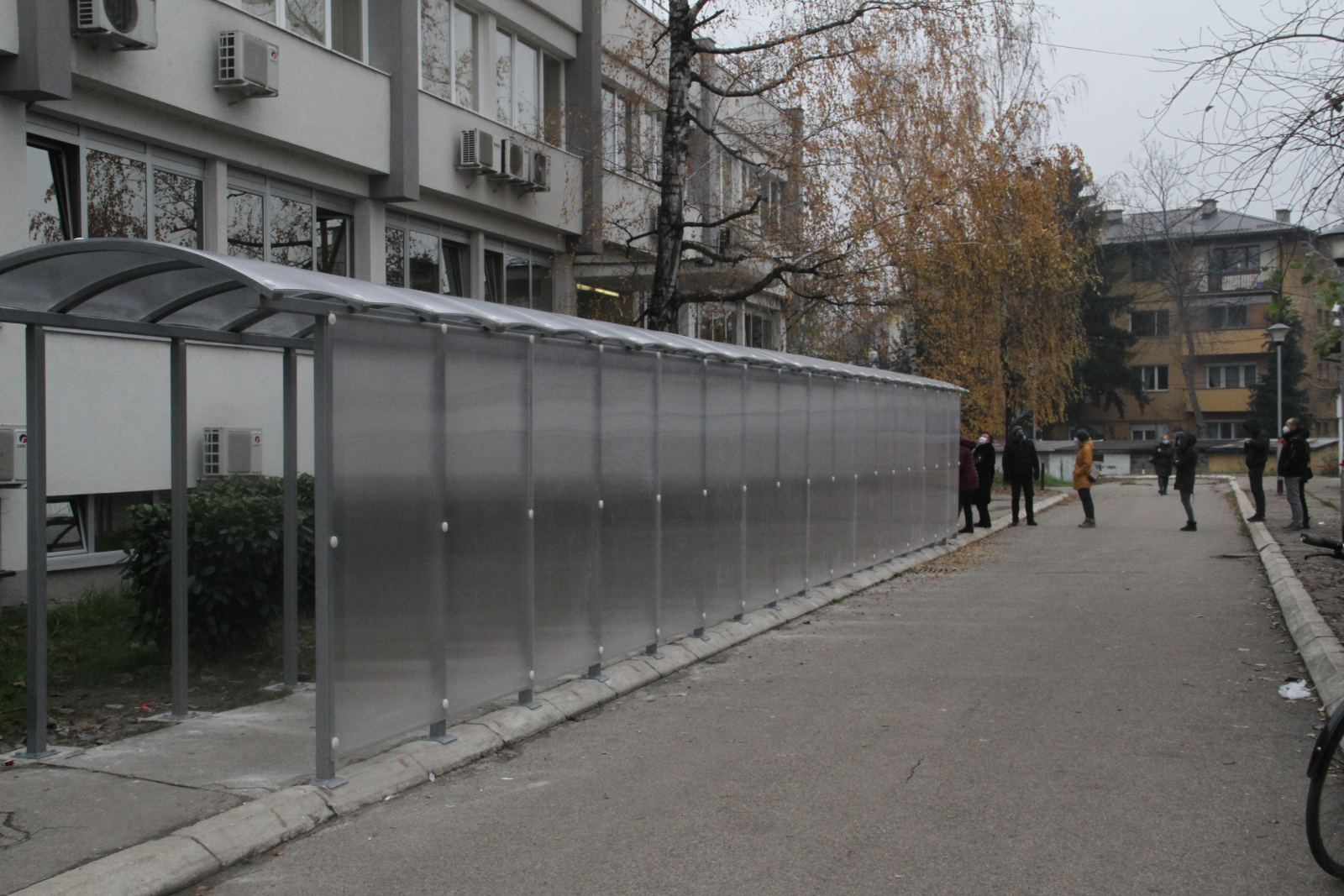 Испред Поликлинике при крају је постављање надстрешница које требају заштити грађане од лоших временских прилика док чекају на преглед, а наредних дана биће монтиране на још седам локација гдје је највећа фреквенција грађана и највећи број регистрованих пацијената.