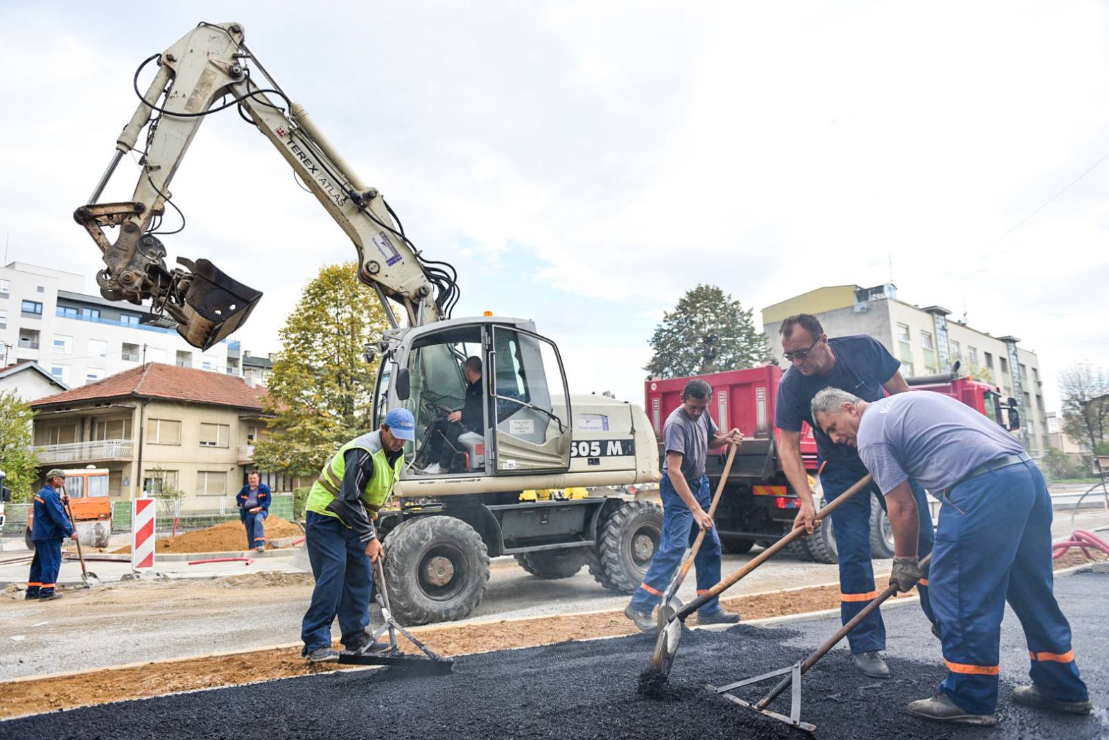 У оквиру завршних радова, током дана почеће полагање првог носивог слоја асфалта на укрштању улица Исаије Митровића, Солунске и Козарске, а јутрос су почели радови на асфалтирању тротоара.