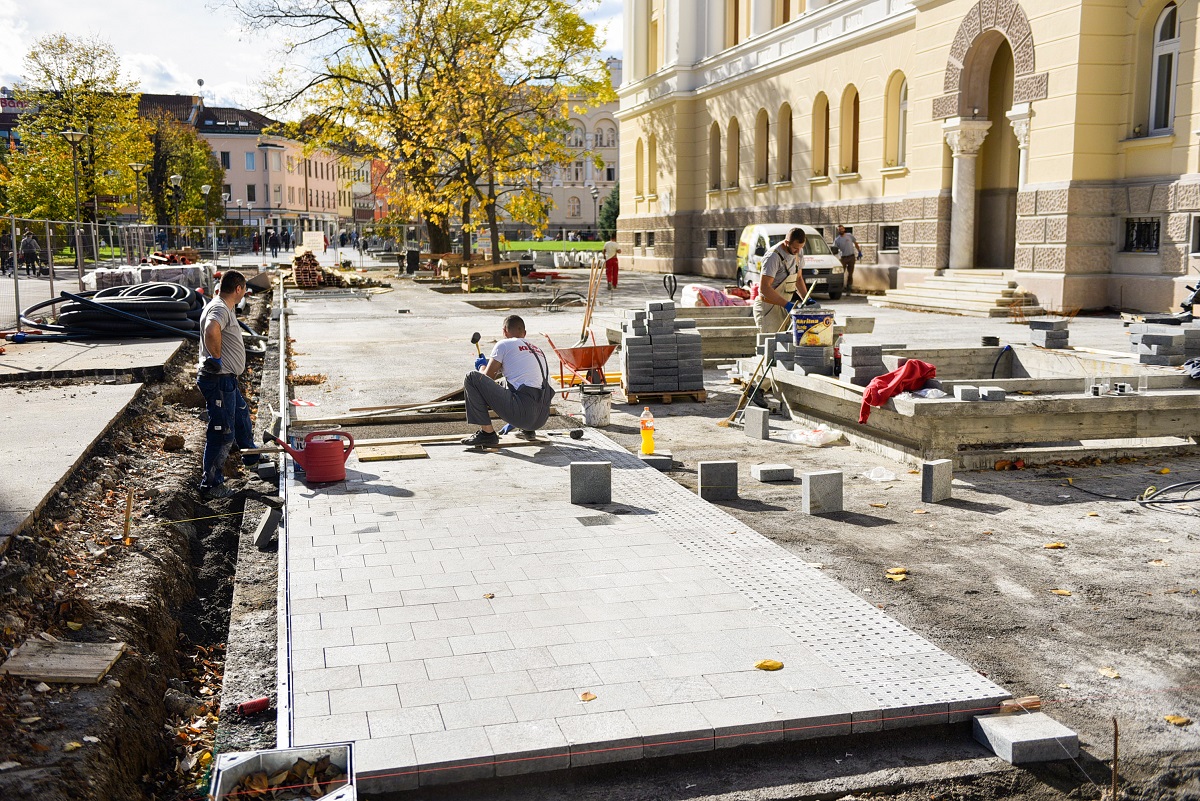 -Радови на подземним инсталацијама су завршени, тако да је ових дана почело постављање гранитних плоча уз бочну страну Банског двора – истиче начелник Одјељења за саобраћај и путеве Славиша Сандић.