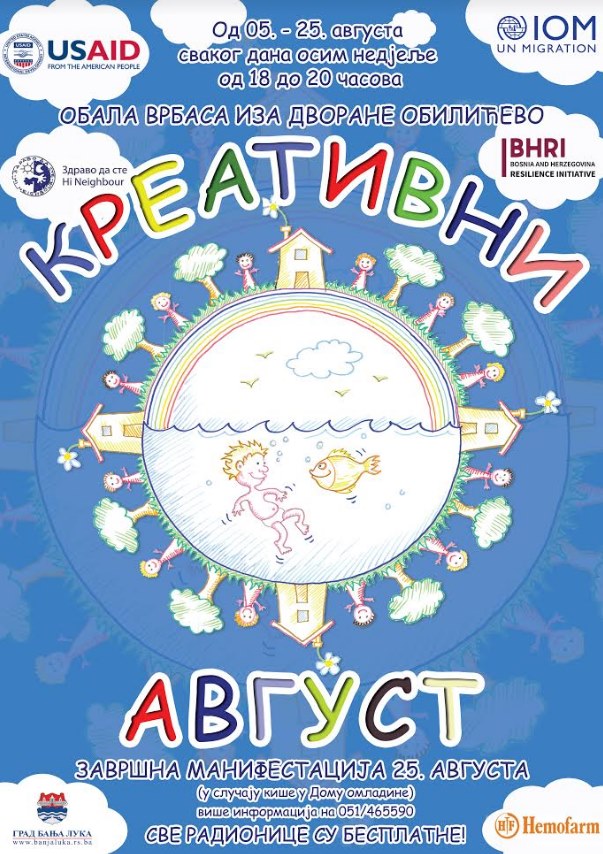 Манифестација намијењена дјеци и младима “Креативни август” почиње данса и трајаће све до 25. августа, а мјесто окупљања је обала Врбаса иза дворане Обилићево.