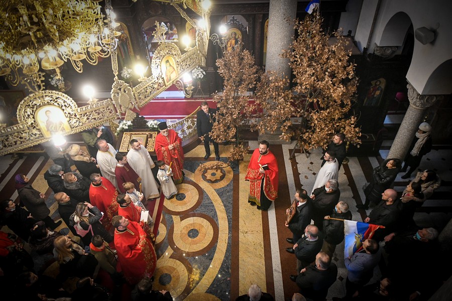 Уз благослов његовог Преосвештенства епископа бањалучког Јефрема, бадњак је освештан у Храму Христа Спаситеља и затим унесен у зграду Градске управе.