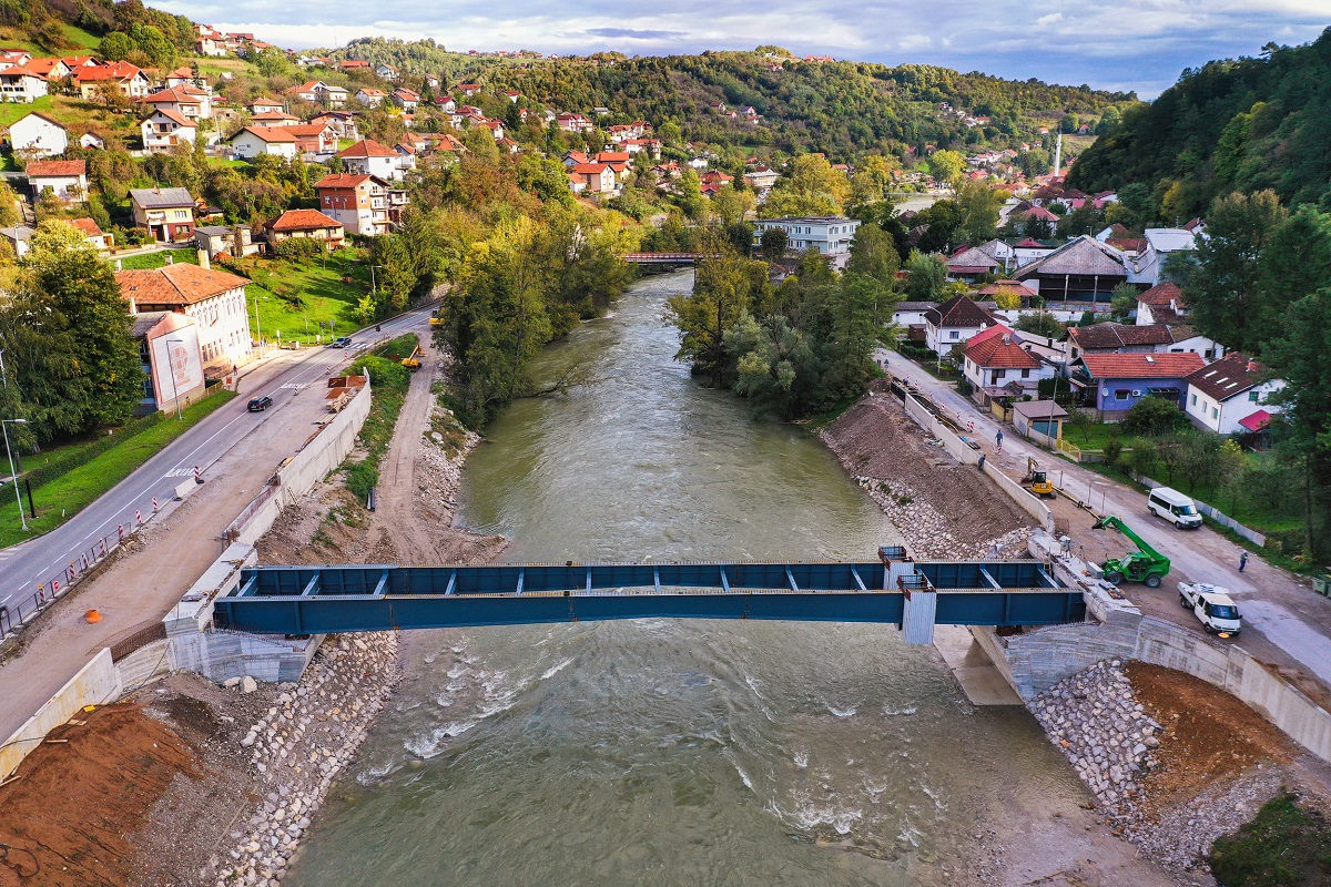 Како су потврдили у Одјељењу за саобраћај и путеве, по изградњи обалних стубова на мосту, сада је завршена и монтажа челичне конструкције моста у дужини од 63,40 метара. Укупна тежина мостовске конструкције је 180 тона.