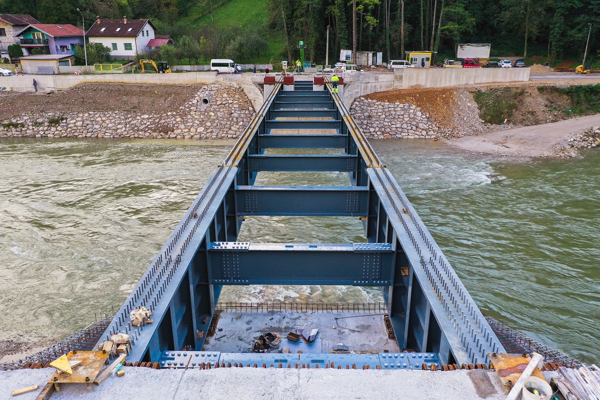 -Преостаје да се поваре попречни носачи, а затим слиједи монтирање оплате за изградњу бетонске плоче. Паралелно са тим радовима, почињемо и изградњу приступних саобраћајница – навели су из одјељења.