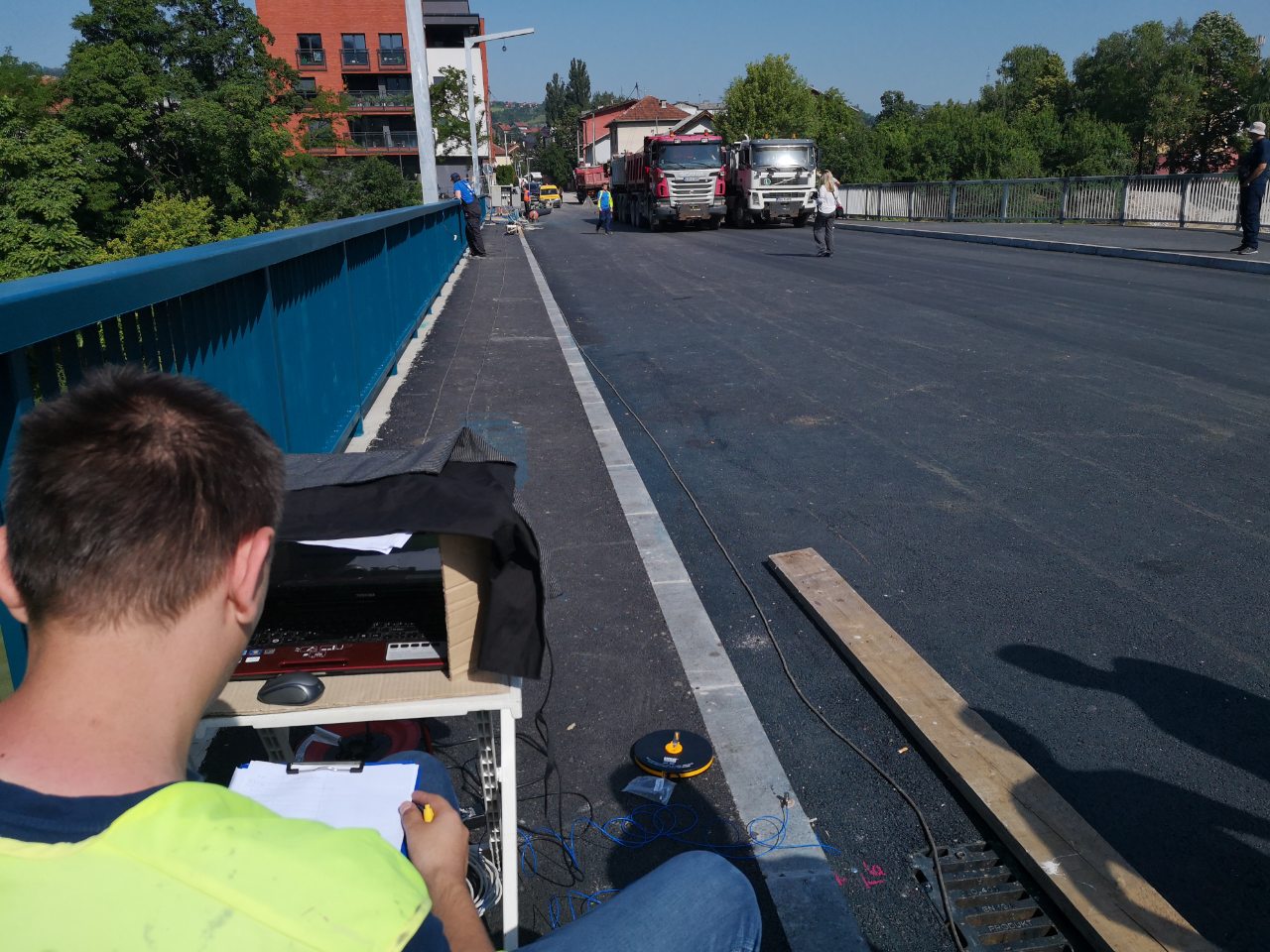 Novi most, izgrađen na lokaciji nekadašnjeg Zelenog mosta, danas je uspješno prošao test opterećenja. Tokom testa, na mostu su se u isto vrijeme, na tzv. najkritičnijim tačkama, našla četiri kamiona sa ukupnim teretom od 120 tona.