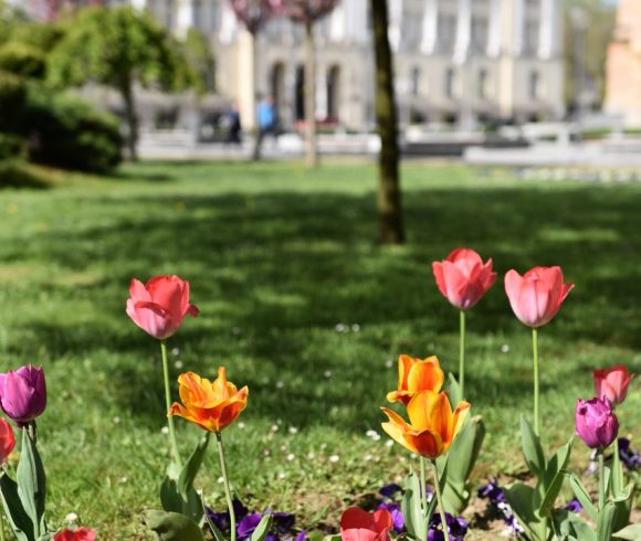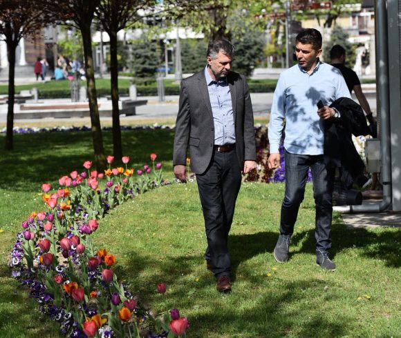 Gradonačelnik Igor Radojičić obišao je danas novozasađene tulipane sorte „Banja Luka“ koji su procvjetali u parku kod spomenika banu Milosavljeviću.
