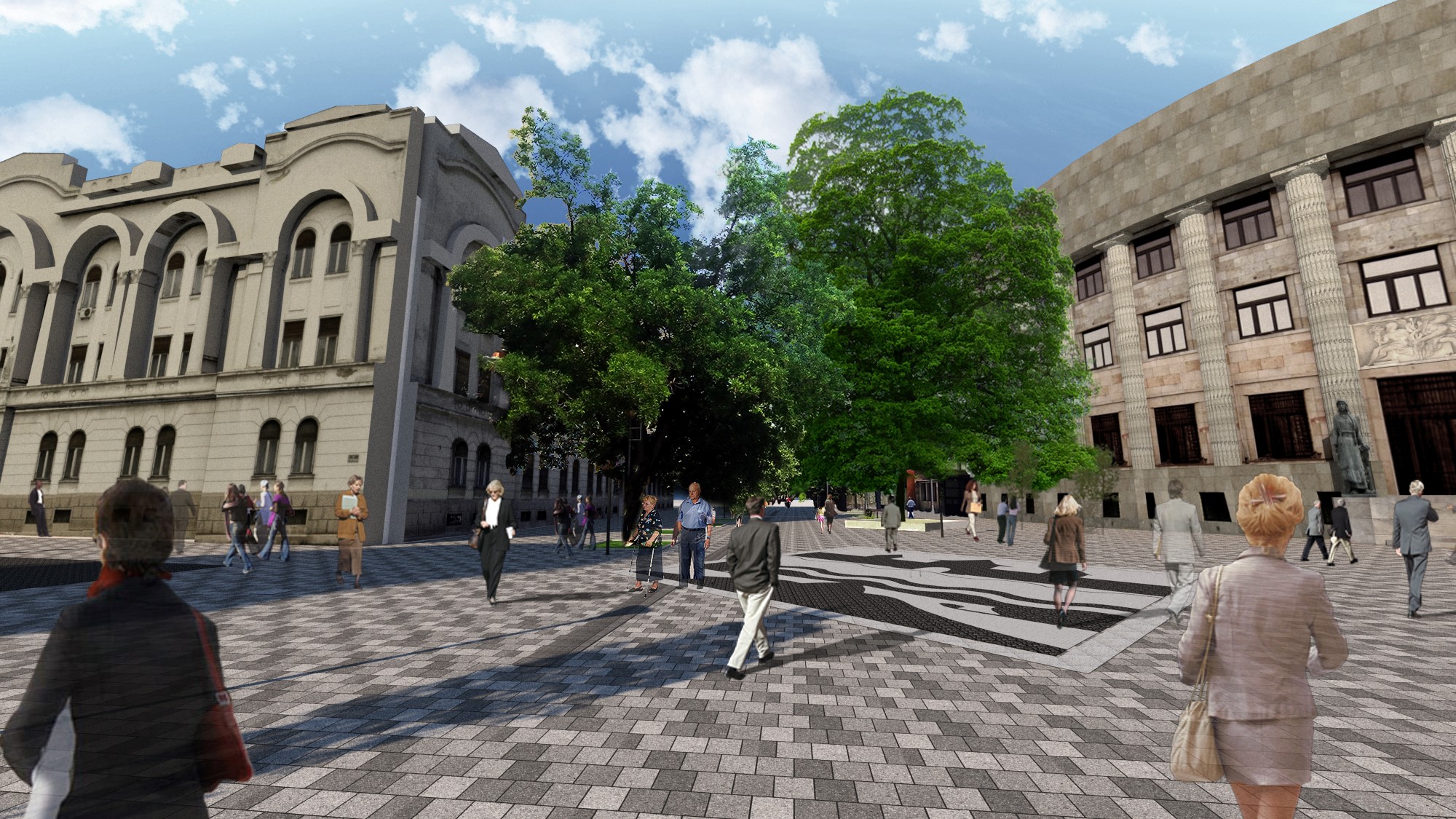 Тај простор, како је предвиђено пројектом, биће поплочан гранитним плочама, уз изградњу нове расвјете, оборинске канализације и инсталација. Постојећи дрворед ће бити задржан и дијелом обновљен.