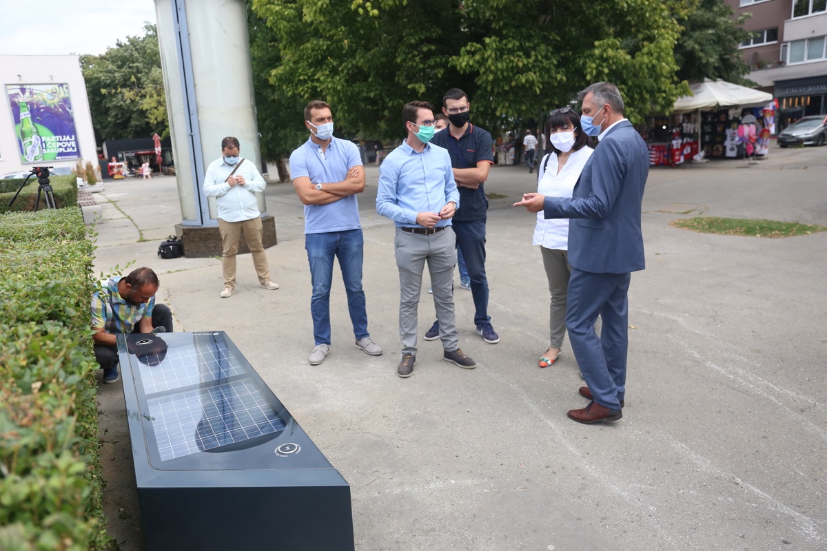 Solarna klupa instalirana u parku kod Narodnog pozorišta