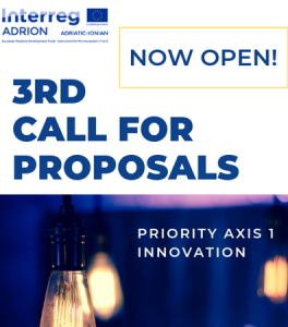 U okviru Transnacionalnog programa saradnje Intereg Adrion otvoren je treći poziv za dostavljanje projektnih prijedloga pod tematskim prioritetom 1 – inovacije (pametni region) i tematskim prioritetom 3 – transport (povezani region).