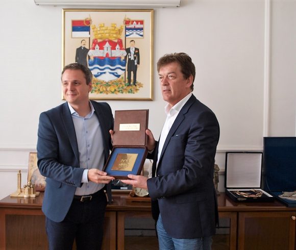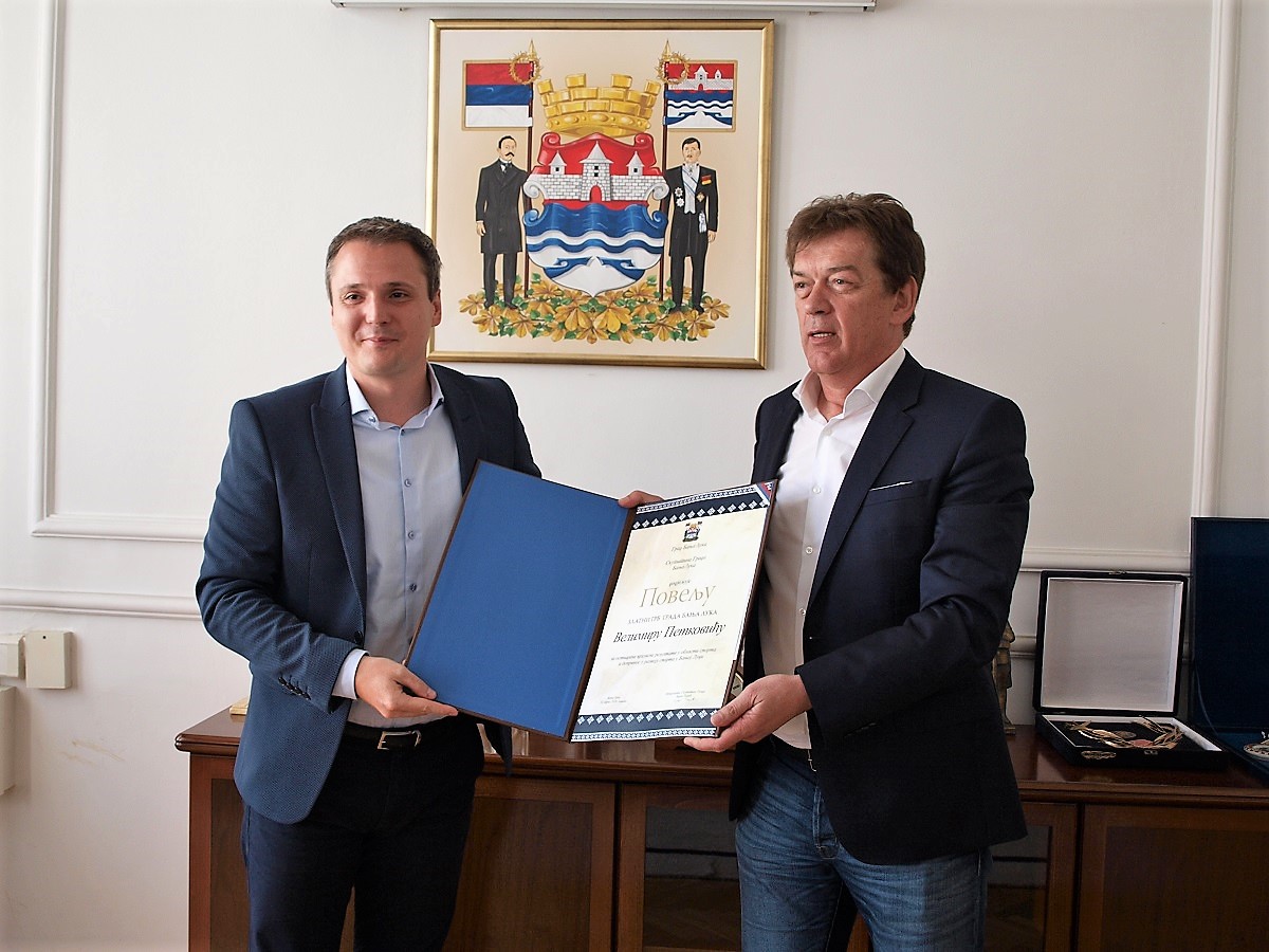 Предсједник Скупштине града Зоран Талић, угостио је данас прослављеног рукометног тренера Велимира Петковића и уручио му априлску награду Златни грб града Бања Лука.