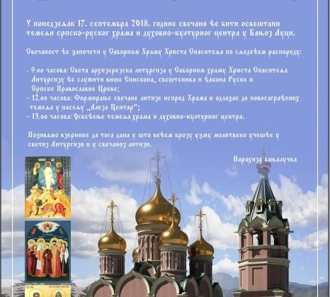 - 13 часова: освећење темеља храма и духовно-култруног центра.