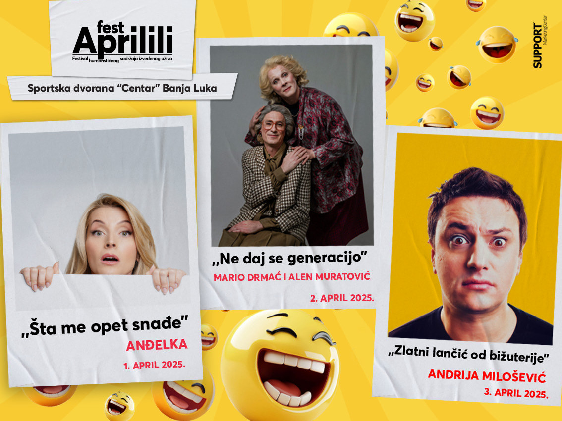 -Ako ste hrabre duše spremne nasmijati se životu u lice – imamo sjajne vijesti! Treći Aprilili Fest je na vratima i vodi vas u treću dimenziju ludila. Opet naopačke okrećemo Banjaluku, od 1. do 3. aprila. Kao od šale. Dolaze nam urnebesni gosti koji humorom razbijaju sve predrasude i SD Centar pretvaraju u epicentar smijeha i zabave. A vi?
