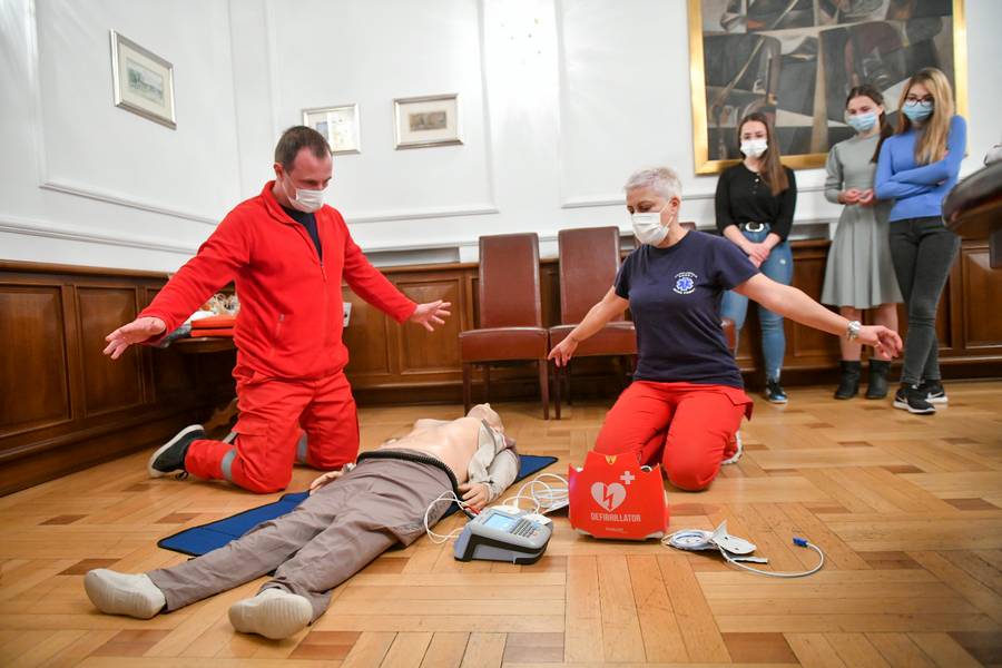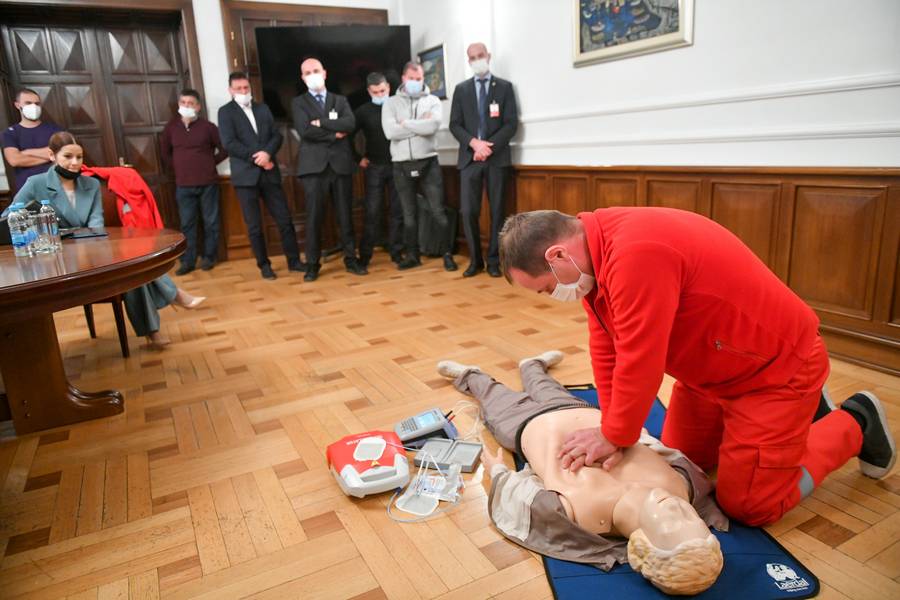Biljana Ćurguz, predsjednik Resuscitacionog savjeta Republike Srpske dodaje kako su zaposlene u obezbjeđenju Gradske uprave obučili kako da prepoznaju odsustvo vitalnih znakova, te kada je potrebno da pozovu Hitnu pomoć i da upotrebe AID aparat.