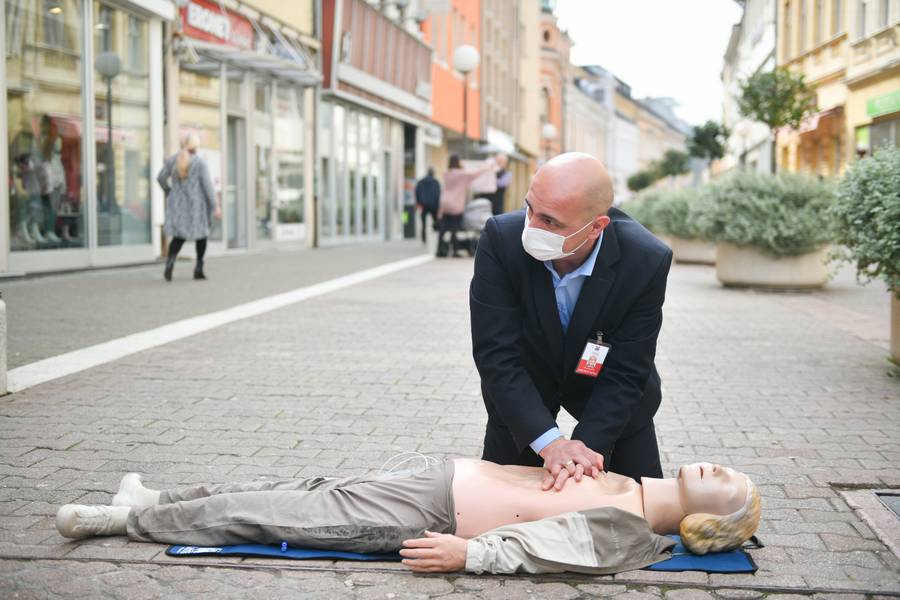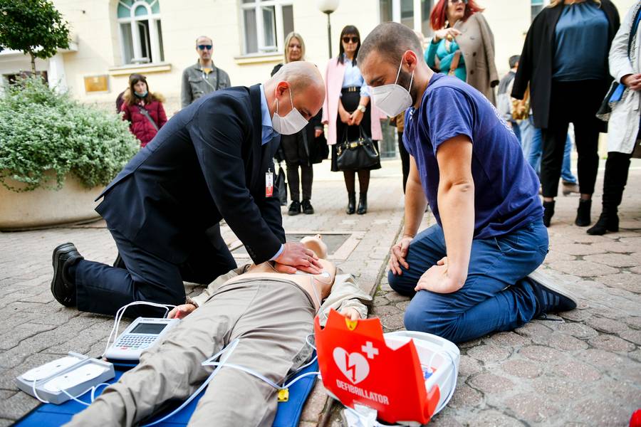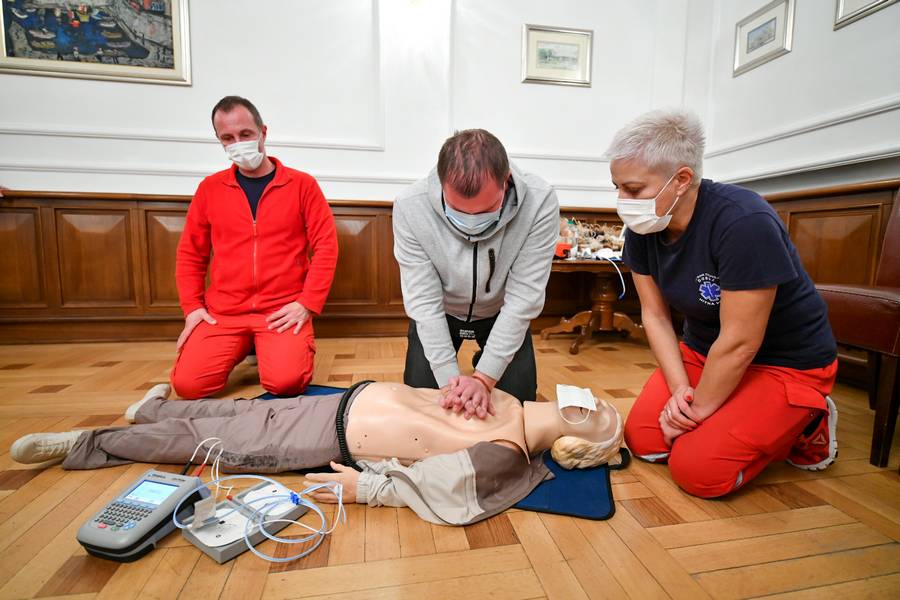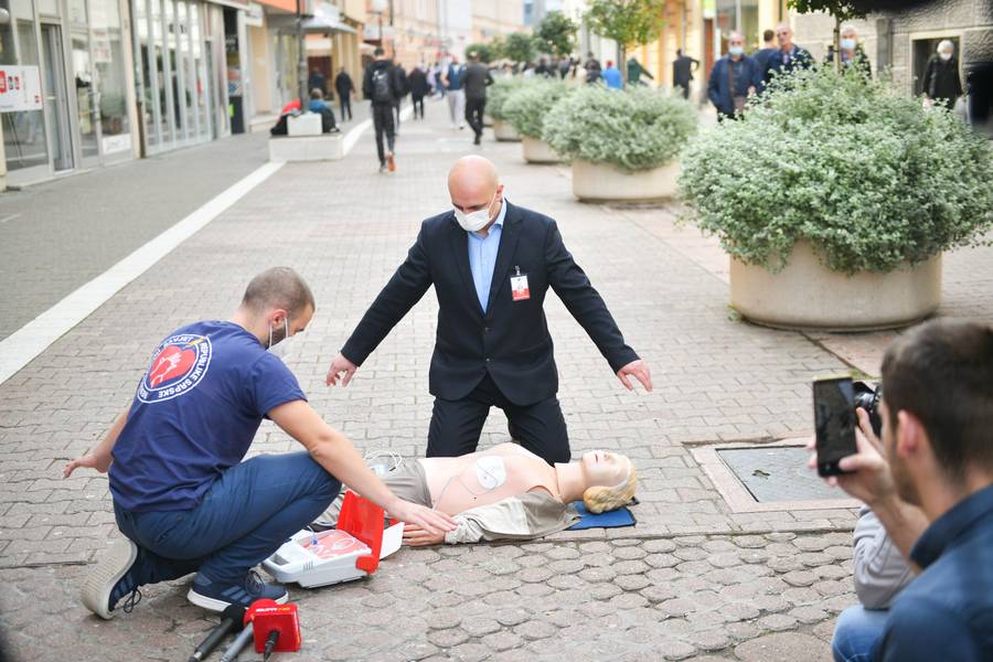 Pokaznoj vježbi u Gospodskoj ulici, prethodila je edukacija zaposlenih Gradske uprave, koji su obučeni na koji način da upravljaju AID aparatom, odnosno automatskim eksternim defibrilatorom, koji je donacija kompanije LED media.