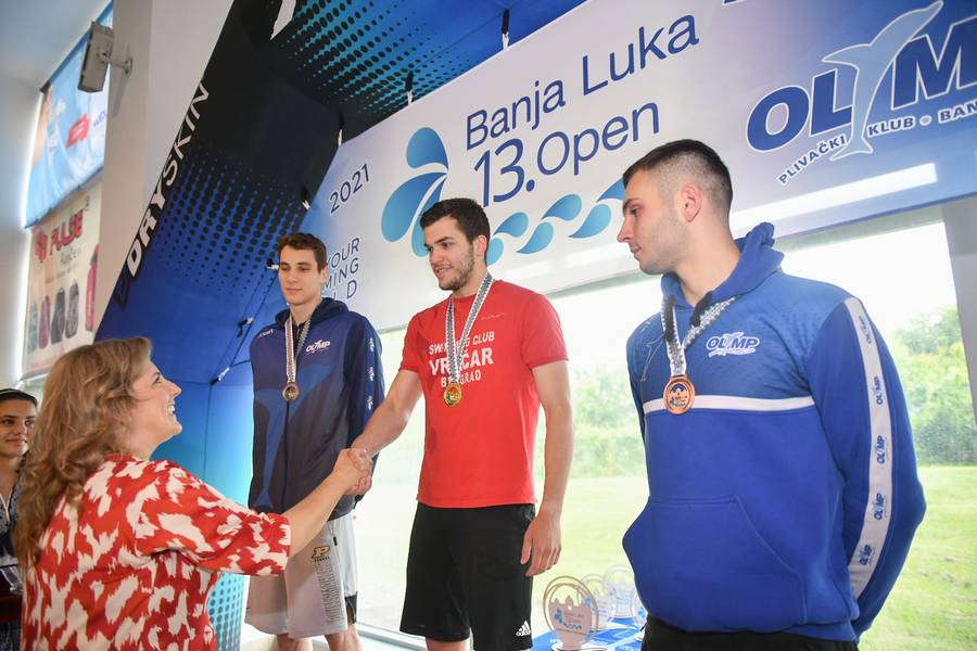 Она је додијелила и прве медаље на овом такмичењу, које се одржава данас и сутра по правилима ЛЕН и ФИНА, у складу са правилима Пливачког савеза Републике Српске и Пливачког савеза БиХ.