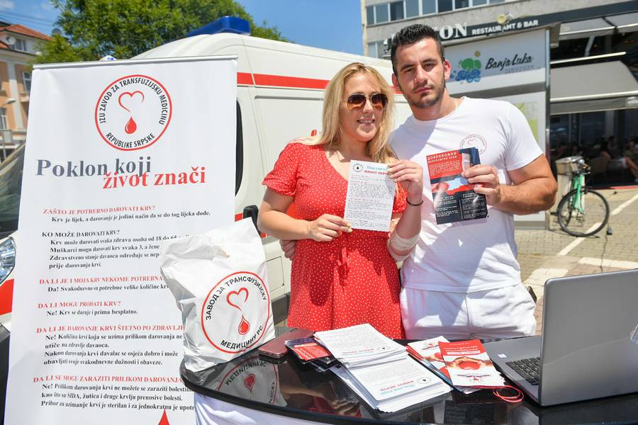 Тим поводом су љекари и чланови Удружења добровољних давалаца крви Града Бање Луке дијелили летке и разговарали са грађанима како би им скренули пажњу на важност давања крви као течности која се не може произвести на умјетни начин.
