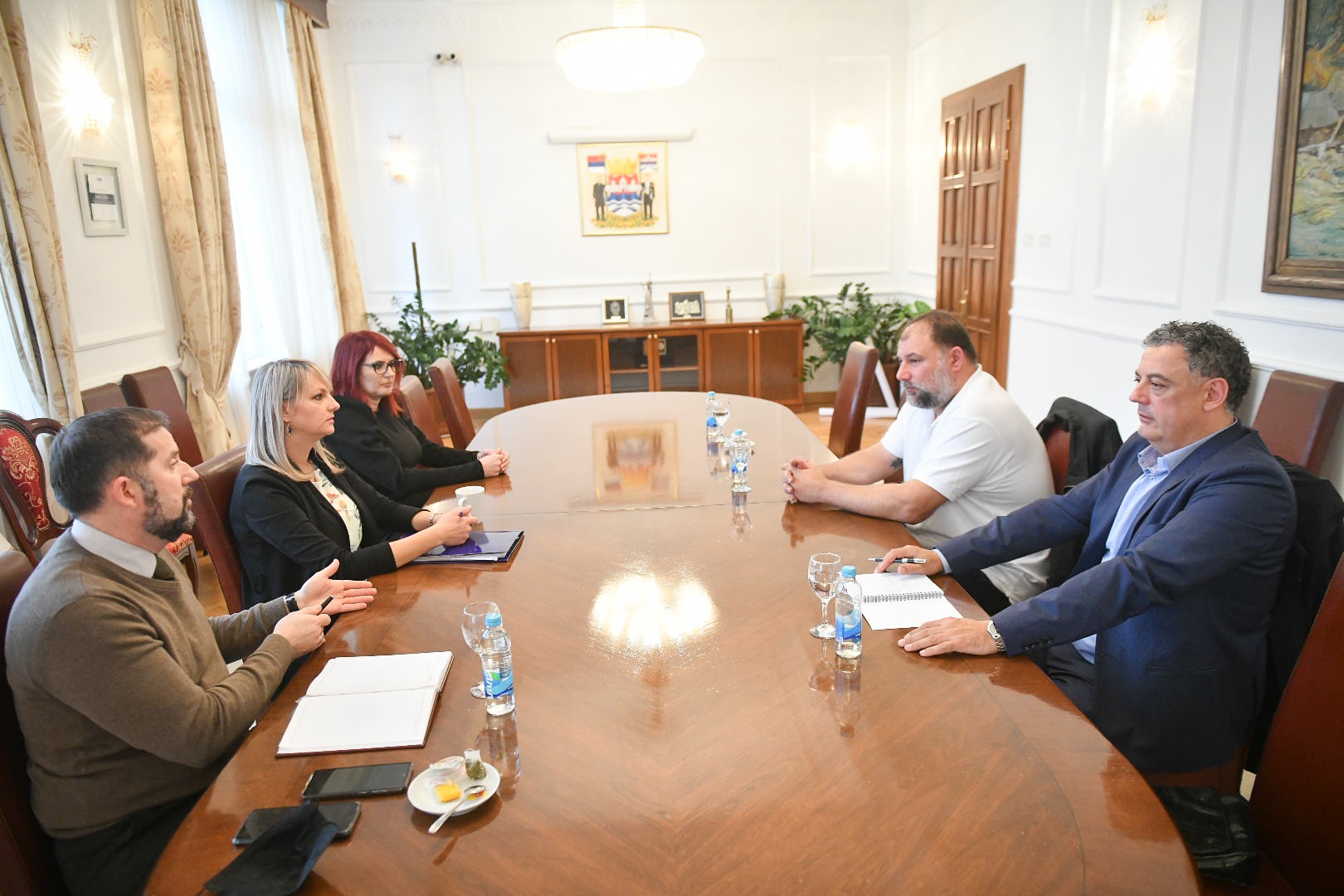 Након сусрета у Градској управи, Савић је посјетио Градски олимпијски базен, гдје је разговарао са представницима ватерполо клубова из града.