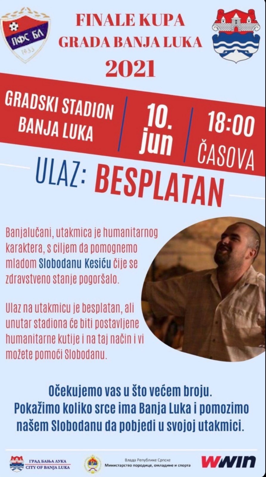 Под слоганом „Слободан је Борац, побиједиће ову битку“ у Спортској дворани „Борик“ са почетком у 19.00 часова биће организован и хуманитарни меч за нашег Бањалучанина Слободана Кесића, познатијег као Борко – маскота „Борца“.