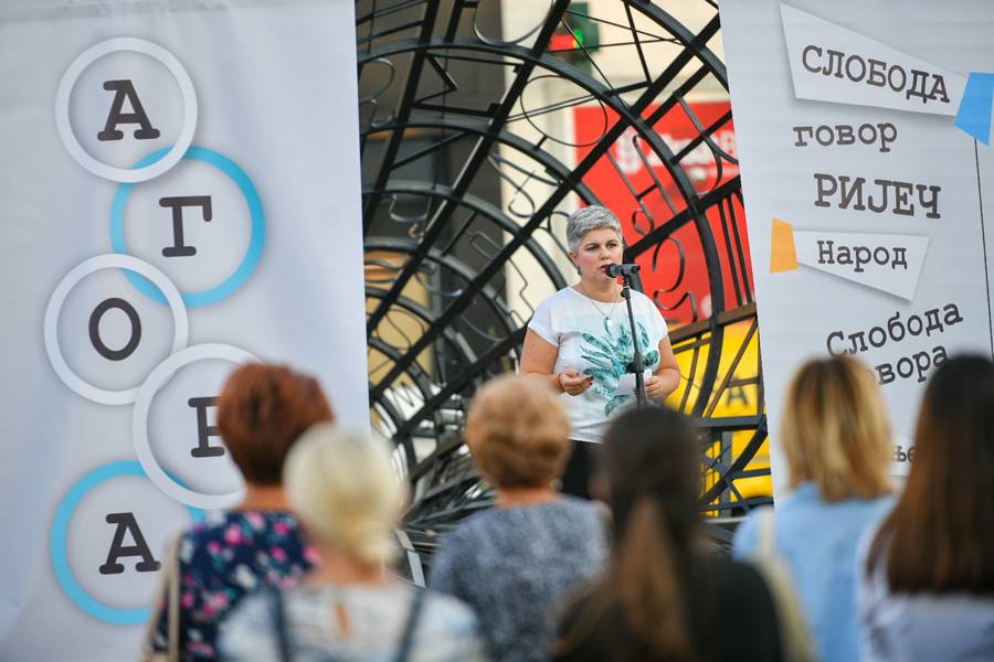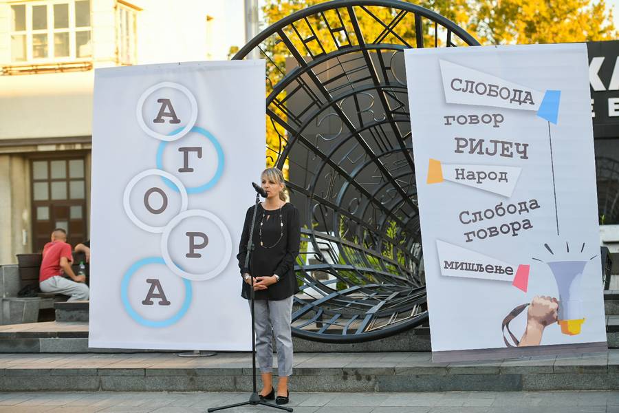 У оквиру вечери бесједништва које се одржава код говорнице на Тргу Крајине, вечерас од 18:00 часова, говориће просвјетни радник Данијел Михић и пјесникиња Марија Ђурић.