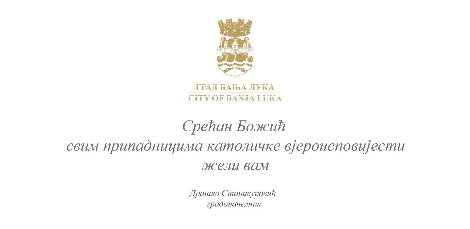 Gradonačelnik Banje Luke Draško Stanivuković čestitao je biskupu banjalučkom Franji Komarici, sveštenstvu i svim vjernicima današnji praznik.