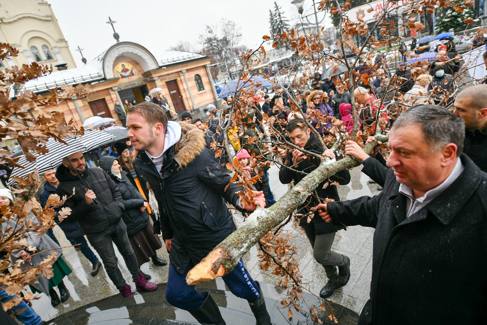 Centralnom gradskom ulicom, kako nalažu vjera, tradicija i običaji, na konjskoj kočiji do Sabornog Hrama Hrista Spasitelja, prošla je povorka sa badnjakom.