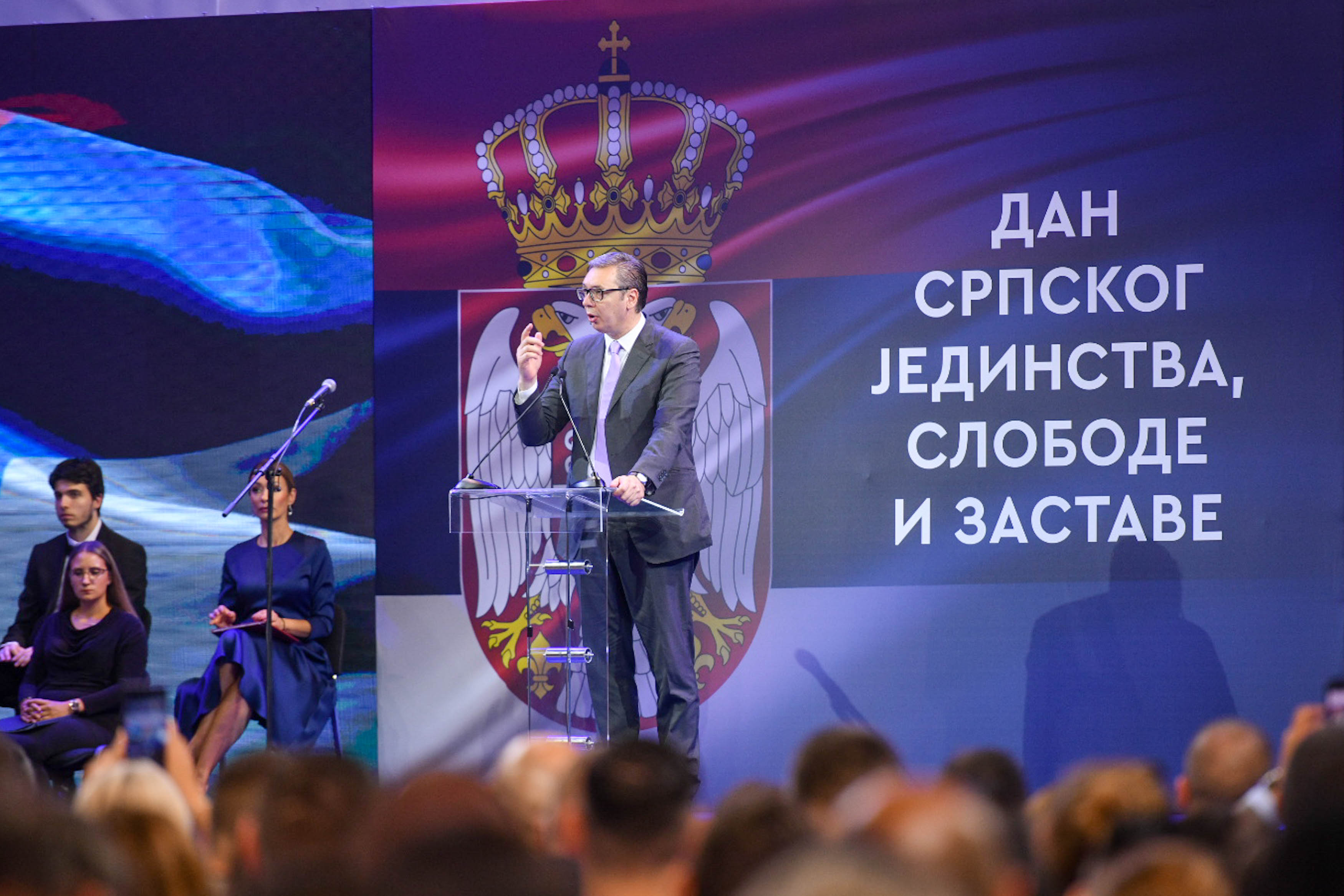 Нагласио је да данас кад нам неки центри моћи желе наметнути самозаборав и самопорицање, док нам, како је казао, други присвајају језик и историју јер своје немају, ми стојимо чврсто у одбрани оног што смо имали и бранили 1389, 1804, 1914.